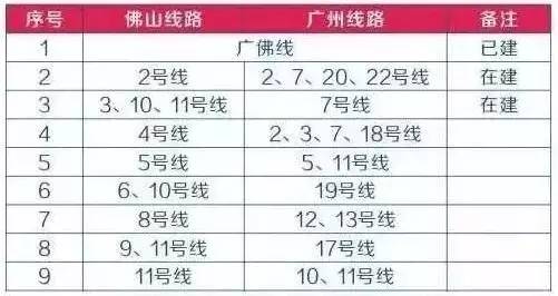 广佛两市城市轨道交通衔接通到一览表