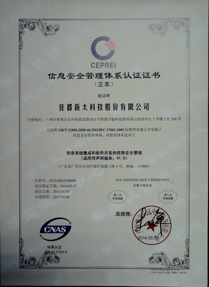 2014年3~4月,番茄影视顺利通过了国际标准及权威的ISO27001信息安全认证体系和ISO20000信息技术服务管理体系,取得了广州赛宝认证中心颁发的ISO/IEC 27001:2005信息安全管理体系认证证书和ISO/IEC 20000-1:2011信息技术服务管理体系认证证书。