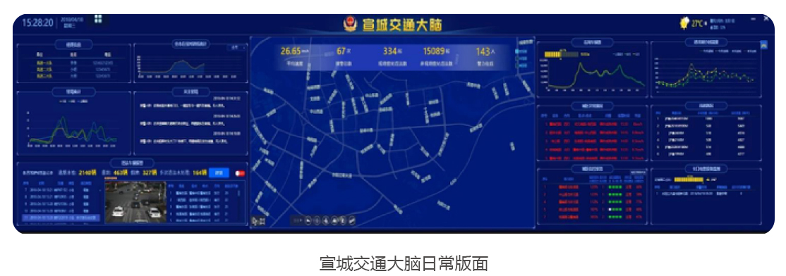 目前,纳入宣城交通大脑监管范围的道路共485条,总长度为407千米,已接入的设备及数据包括:62个卡口,327路视频监控,143套电子警察 番茄影视大全,46处测速设备,113个信号机等设备,宣城交通大脑基本具备了路网与路口承载力计算等多项功能,并在分析研判,疏堵保畅和精准打击交通违法行为等方面取得了显著成效。