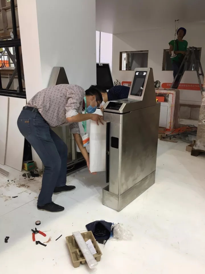 佳都的技术小哥们正在紧张地安装和调试设备,保证明天的展示万无一失